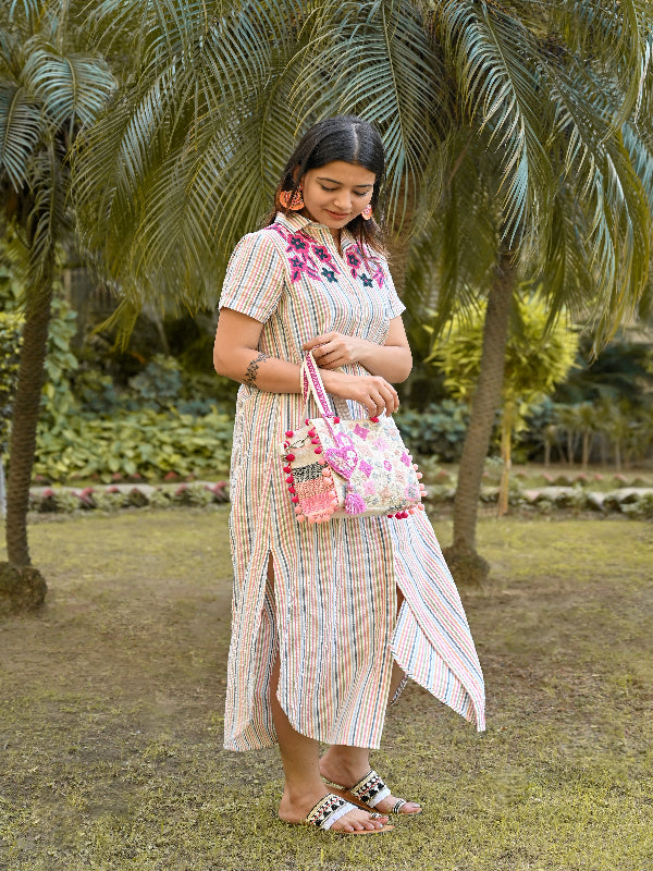 Bohogirl Women's 100% Pure Cotton Multi-Color Striped Co-Ord Set