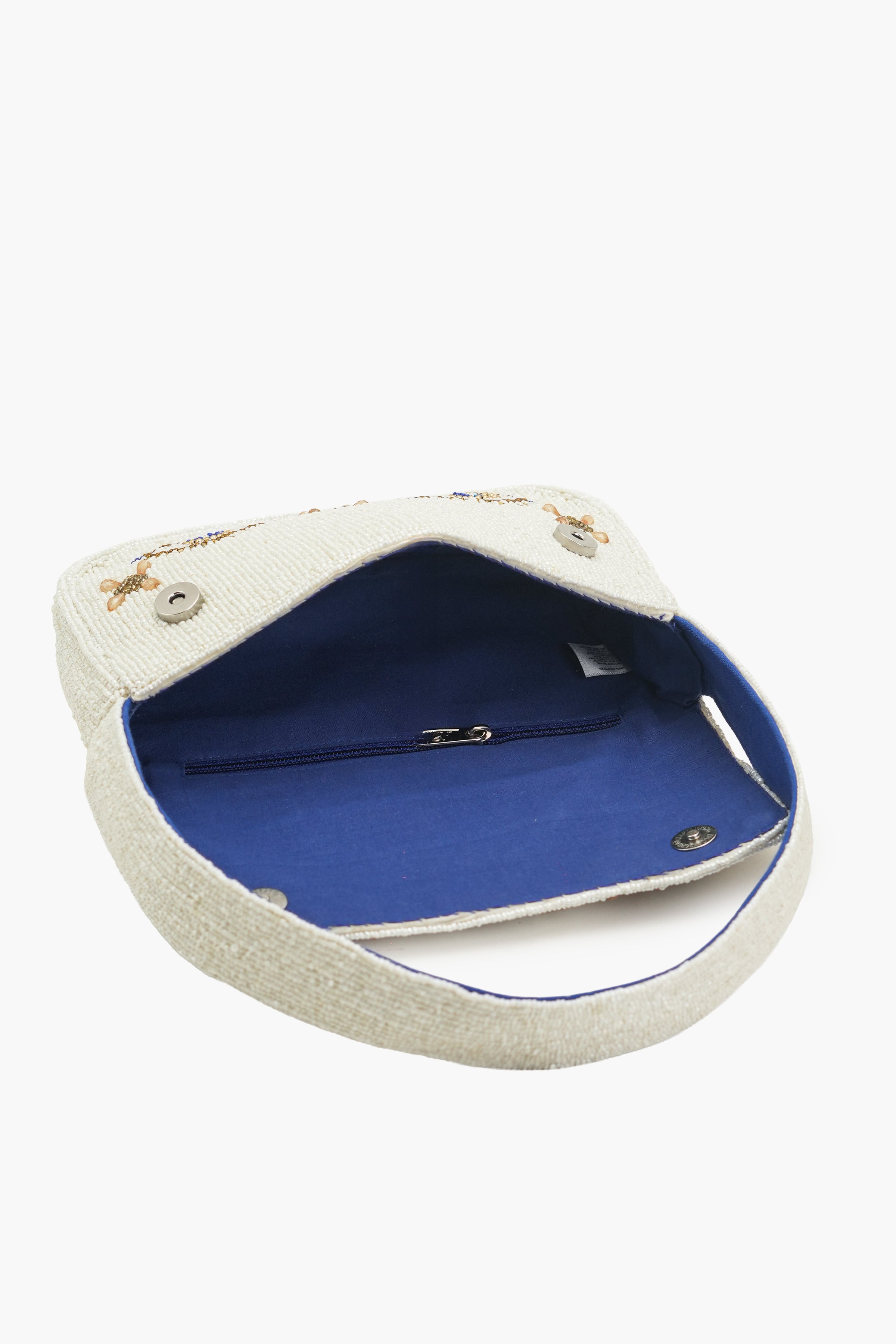 Embrace mystical elegance with the Boho Girl Mystic Eye Fully Beaded Shoulder Bag, paired with stunning handcrafted earrings for a complete luxe look. Each piece features intricate evil-eye beadwork symbolizing protection and good energy, beautifully handcrafted by skilled Indian artisans. The shimmering ivory base with gold and blue accents adds a radiant charm, making it the perfect accessory for celebrations, evening gatherings, and festive occasions. Step out in style with this boho-chic beaded shoulder bag set a perfect blend of art, meaning, and modern luxury.