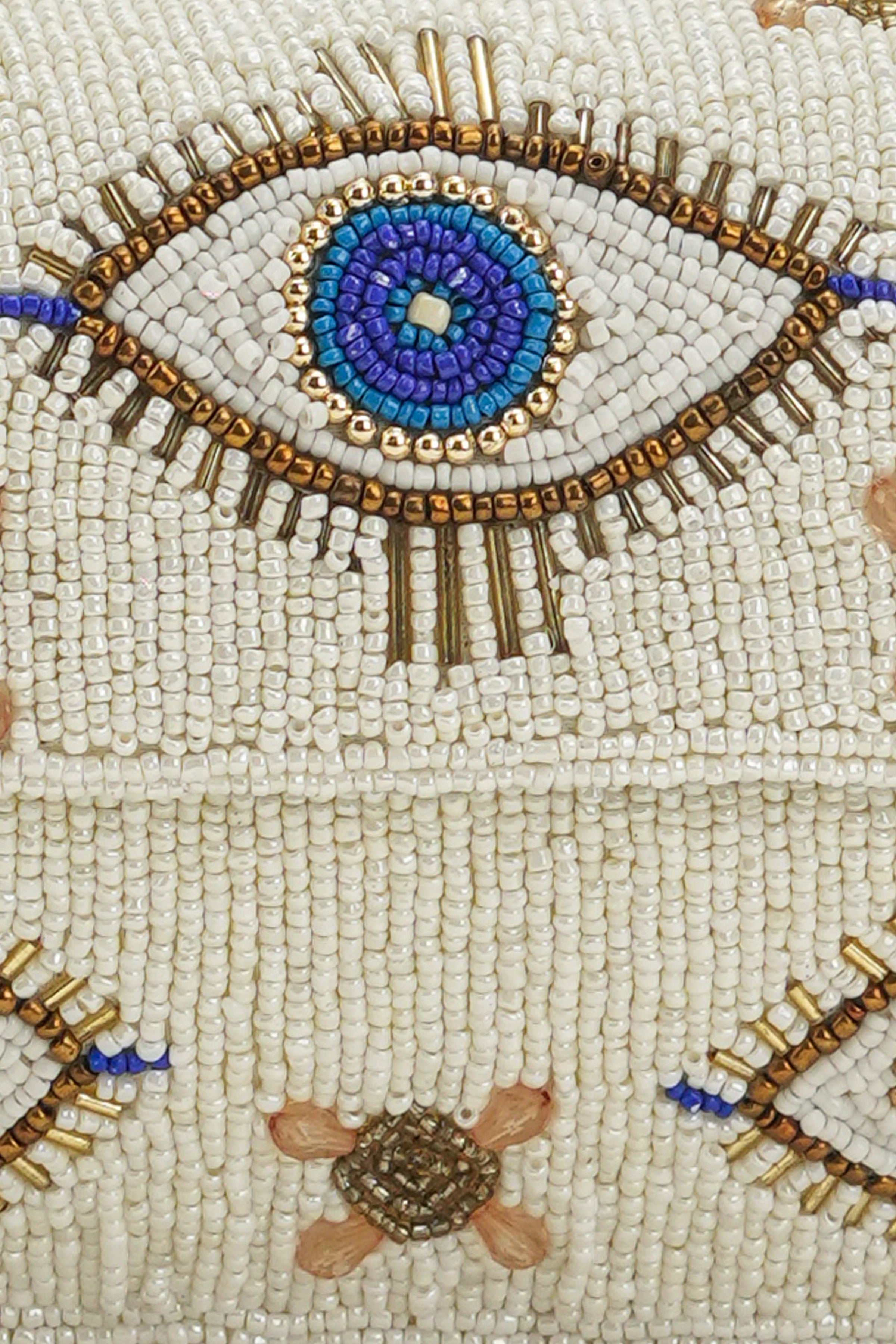 - Fully hand-beaded with intricate evil-eye motifs