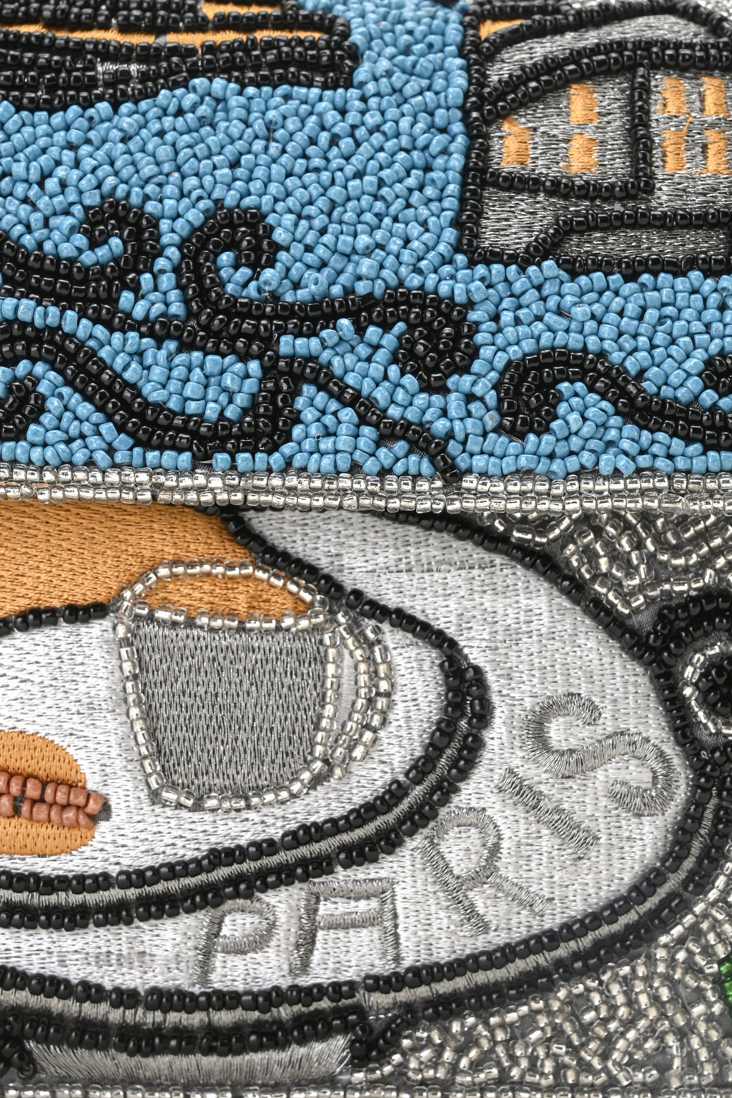 Exquisite Handcrafted Beadwork: Fully hand-beaded by skilled artisans featuring a vibrant Paris scene on a premium silver textured base.