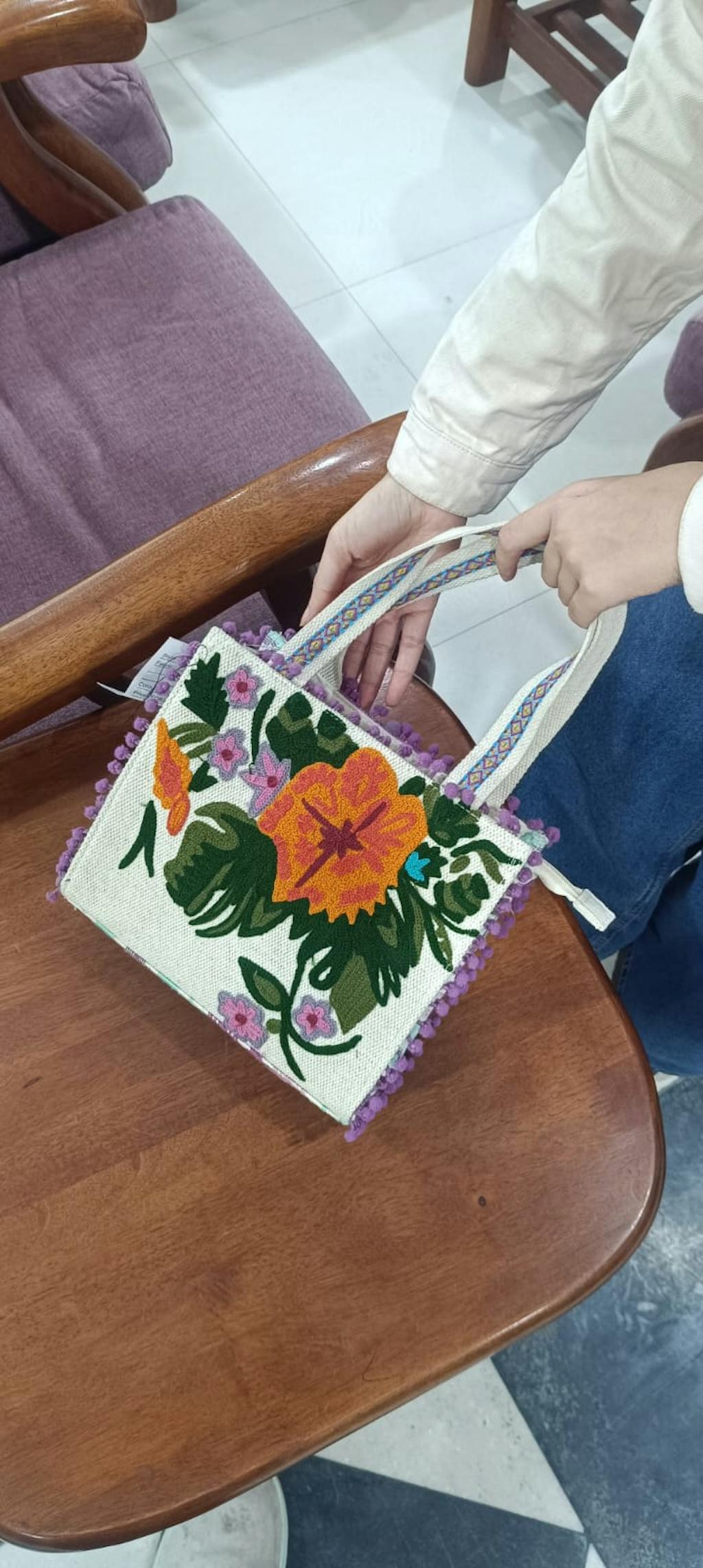 Bring home our Lavender Blooms Mini Tote Bag - features a floral design, showcasing delicate lavender blooms, lush greenery, and pop of colors. The intricate embroidery adds a touch of handcrafted elegance, while the playful pom-pom accents create a bohemian-inspired vibe. The spacious interior is fully lined and features one zipper pocket and one organizer pocket to keep your items securely stored. Whether you’re running errands or enjoying a Girls night out, this stylish mini tote will ensure you look your best.