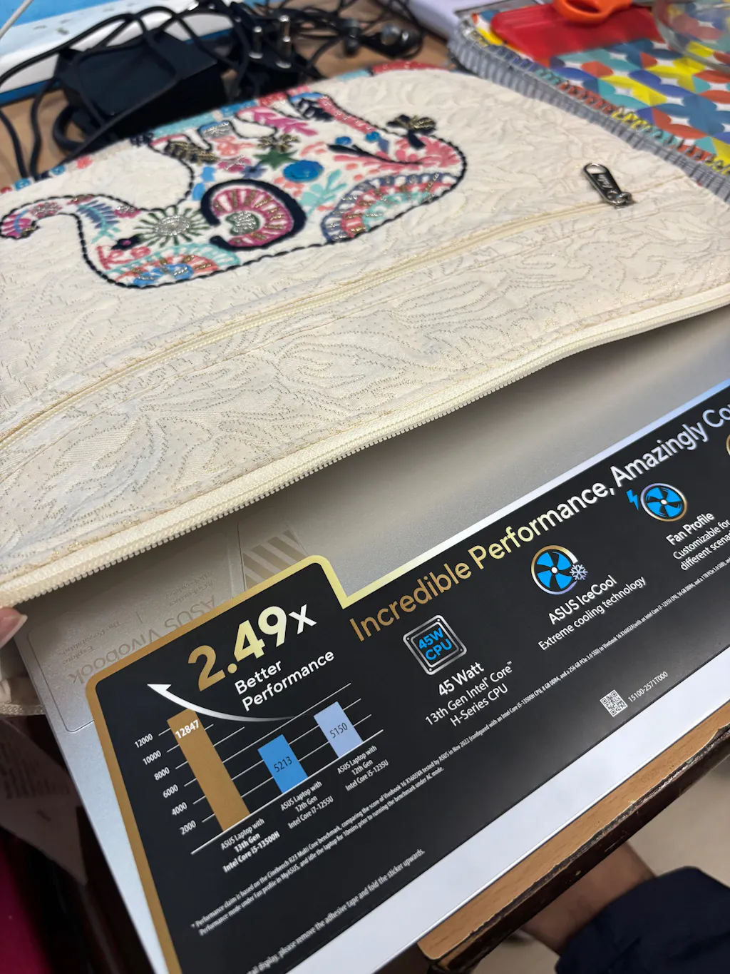Get ready to unleash your style with our Enchanted Elephant Laptop Sleeve! Crafted from Indian-inspired white durrie cotton, it showcases a beautiful hand-embroidered elephant pattern. The inner polyester lining and zipped outer pocket provide functionality. This chic laptop cover, with its embroidered texture and vibrant stripes, is the perfect mix of work and play. Why settle for ordinary when you can carry it in style? Shop today!