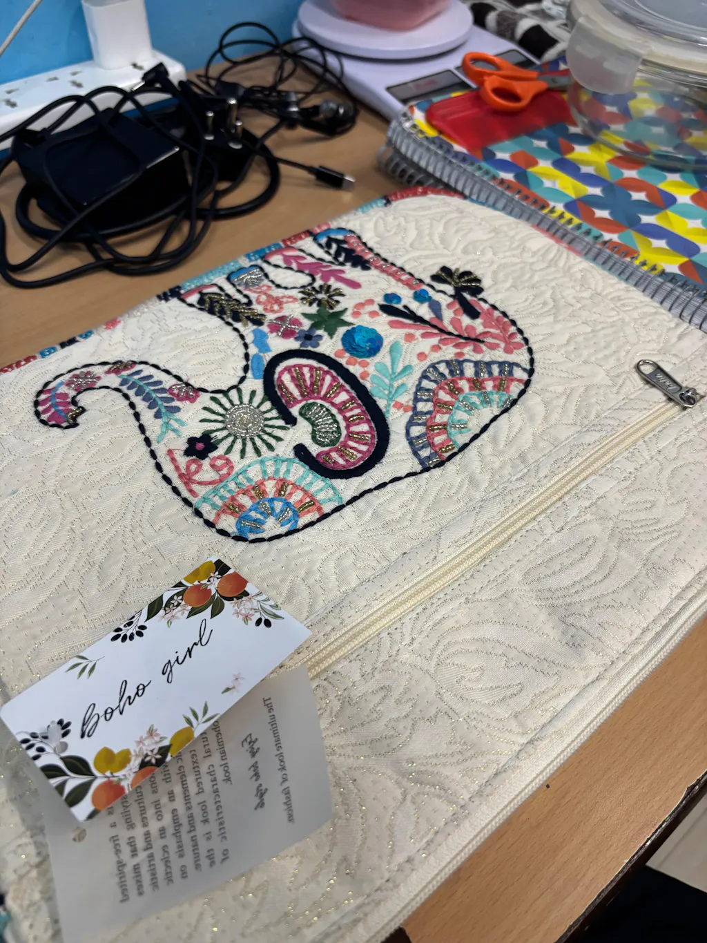 - Hand-Embroidered Elephant Pattern