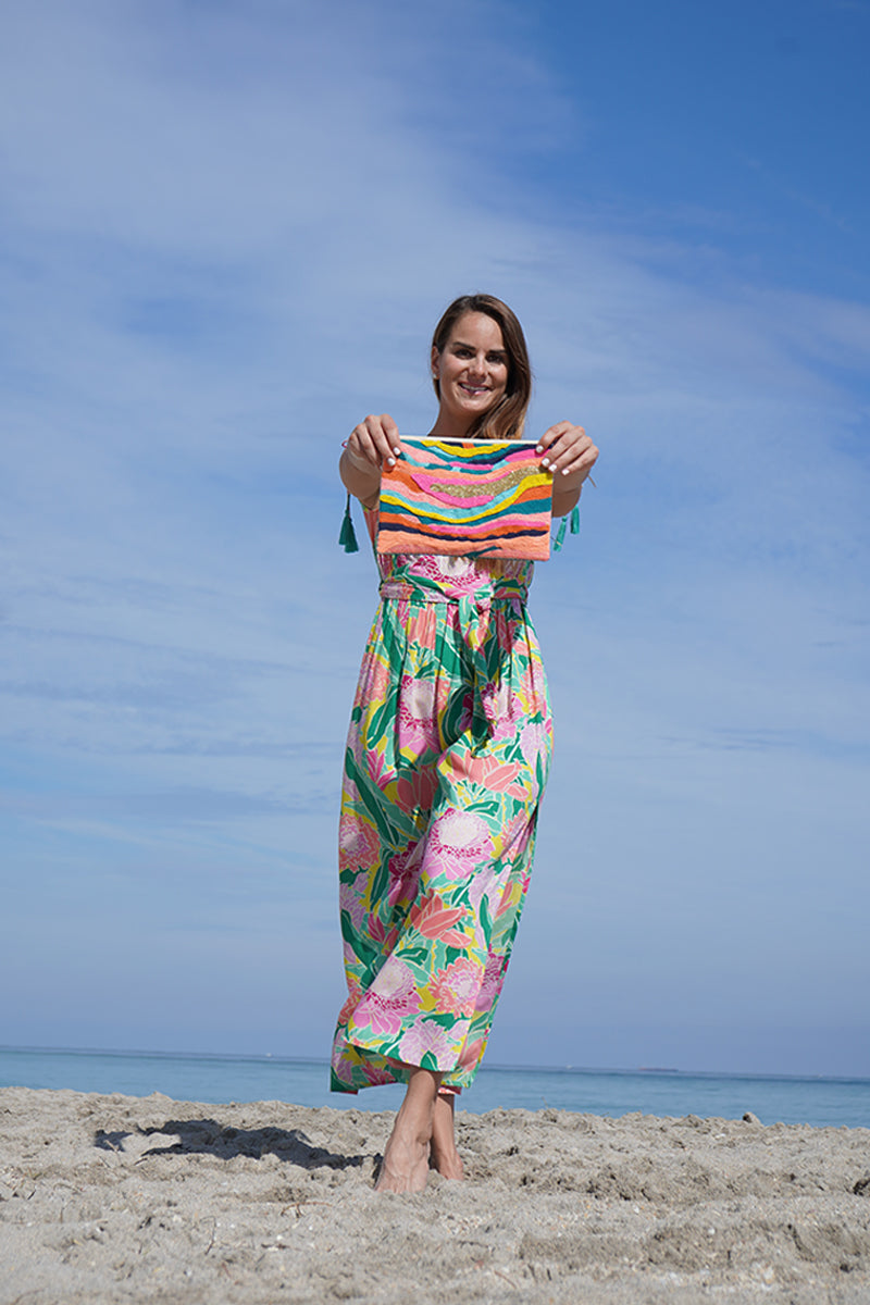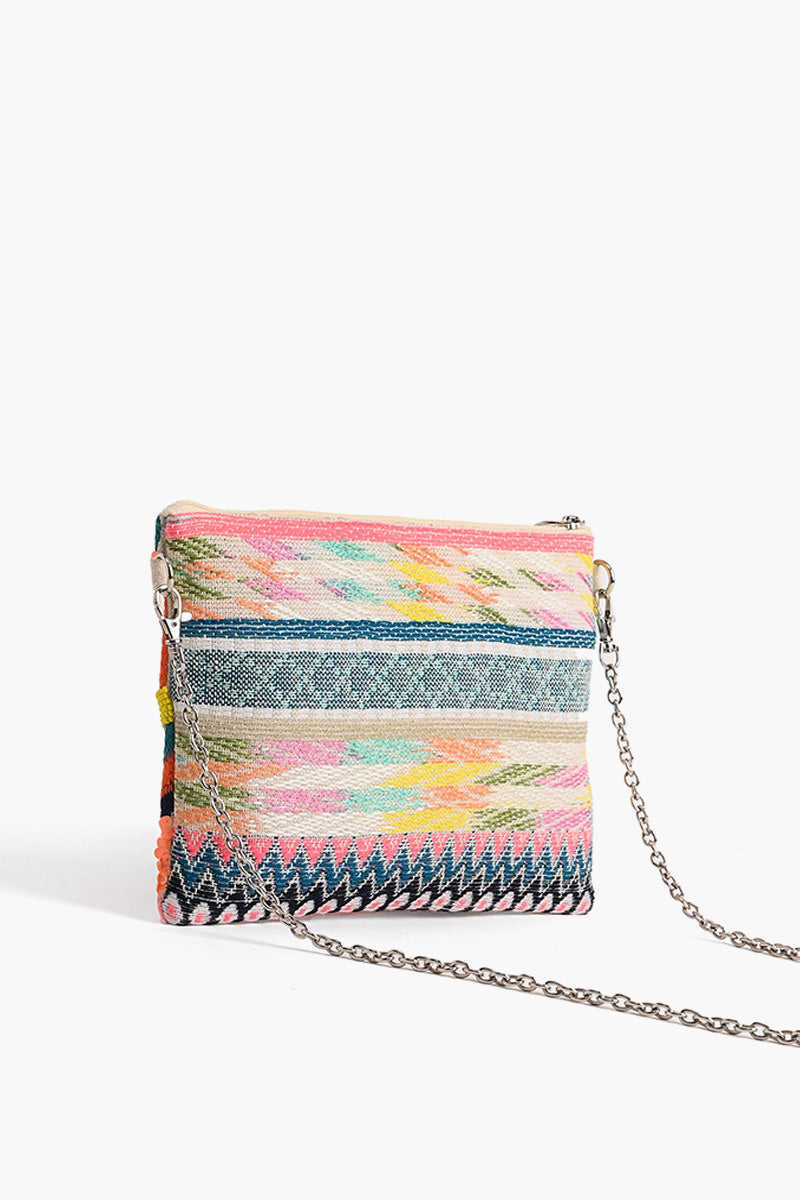 The detachable chain strap adds versatility, and its lightweight cotton construction ensures comfort on warm days. Say goodbye to dull accessories and make a splash at any occasion with this must-have, head-turning clutch.