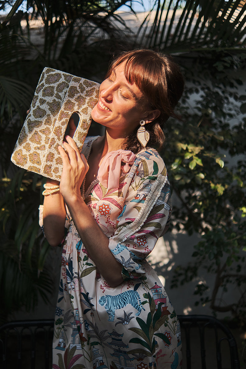 - Vibrant embellishments in beads & sequins in Cheetah pattern