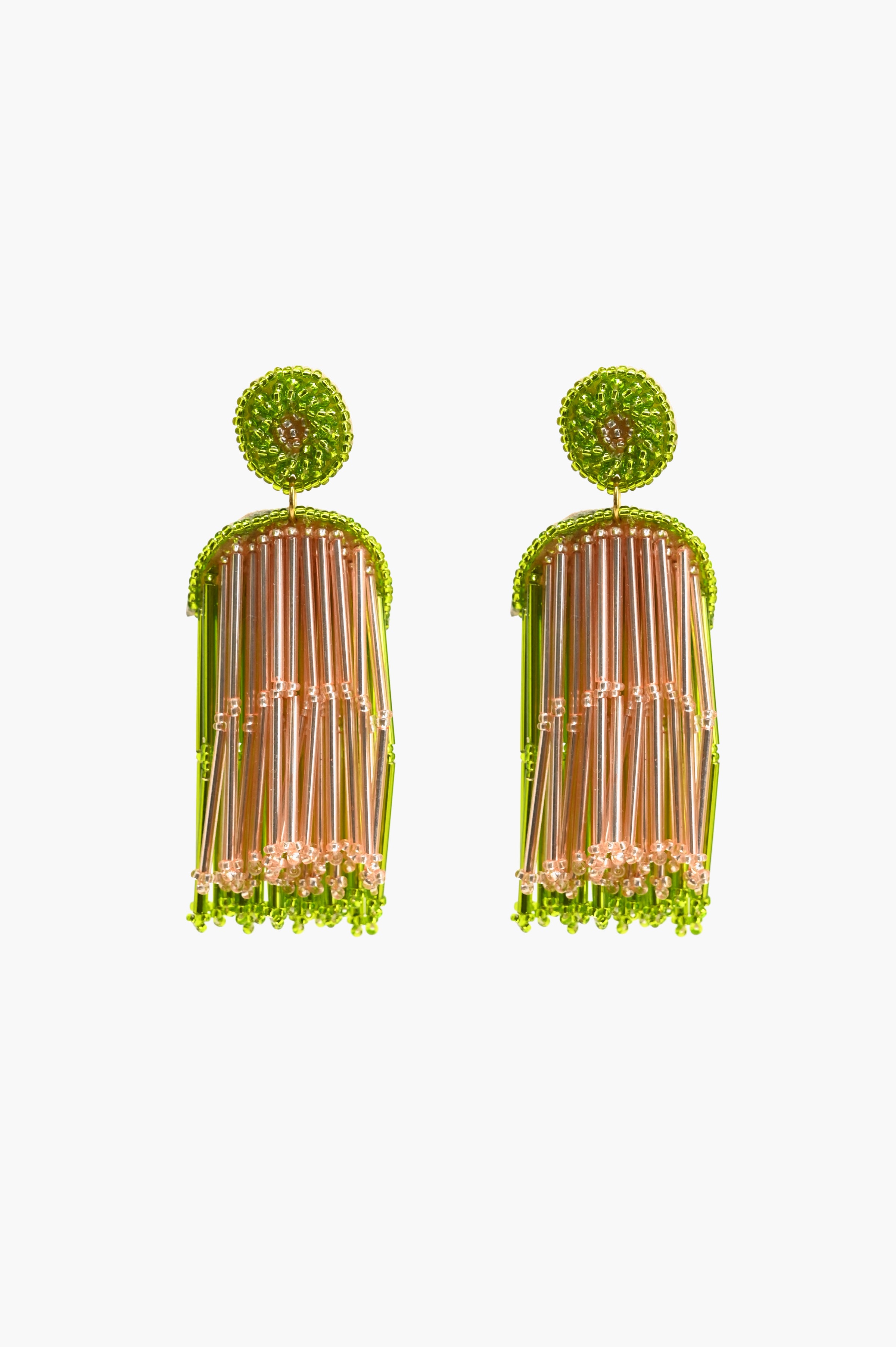 Add a fresh twist to your accessory collection with Bohogirl’s Lime Green Beaded Earrings. These handcrafted drops feature a detailed beaded stud paired with elegant, cascading tube tassels that offer unique texture and movement. Lightweight and vibrant, they are the ideal statement piece for a bold, bohemian look.