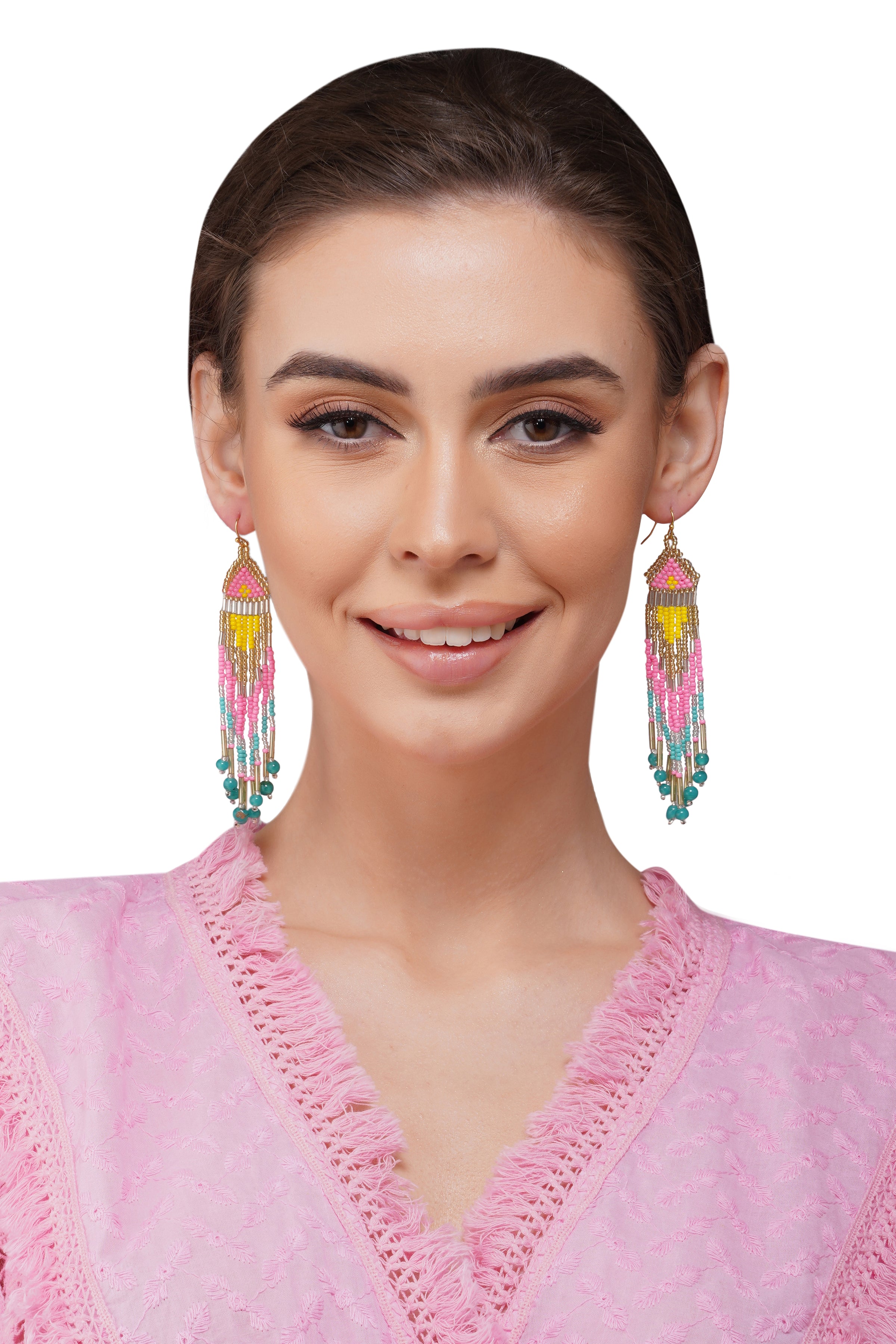 Handcrafted Multi-Color Beaded Fringe Earrings