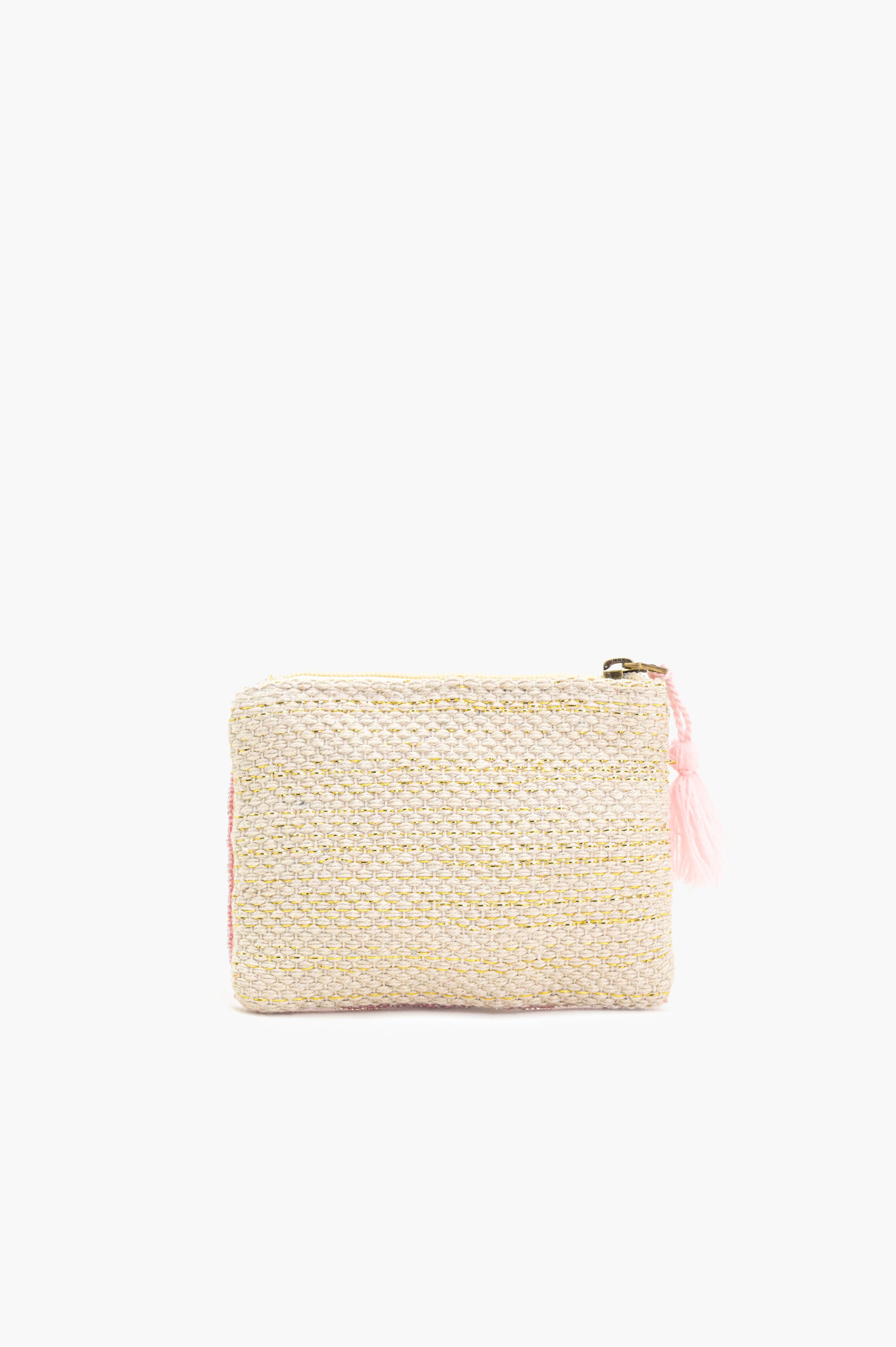 Handmade Pink & Gold Striped Beaded Pouch - LOVE UP Luxury Coin Pouch